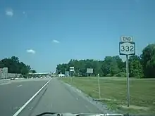 New York State Route 332 (NY 332) is a north–south state highway that extends for 9.05 miles (14.56 km) through Ontario County in the Finger Lakes region of New York in the United States. The southern terminus of the route is at an intersection with U.S. Route 20 (US 20), NY 5, and NY 21 just south of downtown Canandaigua. Its northern terminus is located at the toll barrier preceding New York State Thruway (Interstate 90 or I-90) exit 44 in Farmington. NY 332 is the primary route for travelers destined for Canandaigua from locales such as Rochester and Victor to the northwest of the city.
