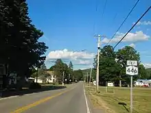 New York State Route 446 (NY 446) is a state highway in the Southern Tier of New York in the United States. The highway extends for 6.76 miles (10.88 km) on a northeast–southwest alignment from an intersection with NY 16 north of the hamlet of Hinsdale to a junction with NY 305 in the village of Cuba. It parallels the Southern Tier Expressway (NY 17 and Interstate 86 or I-86) very closely for its entire length. NY 446 was originally designated as part of Route 4, an unsigned legislative route, in 1908. The Hinsdale–Cuba highway received its first posted designation in 1924 when it was included as part of NY 17. It was renumbered twice, becoming part of NY 63 in 1930 and NY 408 in the 1940s, before gaining its current designation on July 1, 1974.
