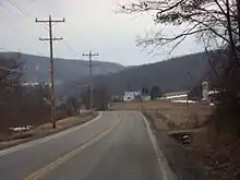 NY 446 begins at an intersection with NY 16 in the Hinsdale hamlet of Maplehurst, located a quarter-mile (0.40 km) north of exit 27 on the Southern Tier Expressway (I-86 and NY 17) and roughly one mile (1.6 km) north of the larger community of Hinsdale. The route heads northeast through the town of Hinsdale along the base of a valley surrounding Oil Creek. While NY 446 follows the north bank of the creek, the Southern Tier Expressway and the adjacent Western New York and Pennsylvania Railroad (WNYP) run along the southern bank.[3]