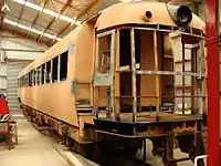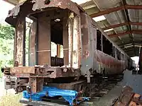 By the early 1990s, the only known survivor was RM 133 in its "Grassgrub" form as AC 8140, used for fire training at Auckland Airport.[44] In 2001 the RM 133 Trust Board was able to obtain this car. Before the railcar could be removed a fire broke out in the No 2 end of the railcar, damaging the body.[45] The RM 133 Trust decided to look for any other extant railcar halves to pair with the No 1 end of RM 133, which had been moved to the Pahiatua Railcar Society's site.
