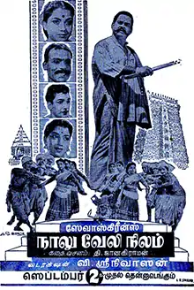 Naalu Veli Nilam (transl. 27 Acres Land) is a 1959 Indian Tamil-language drama film directed by Muktha V. Srinivasan. The film stars S. V. Sahasranamam, M. Pandaribai and M. Mynavathi. It is based on the play of the same name.[2] The film was released on 2 September 1959.[3]