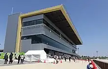 Nagoya Racecourse (名古屋競馬場, Nagoya Keiba-jō) is located in Yatomi, Aichi, Japan, and runs under National Association of Racing.[1] It is a 1100-meter dirt oval with 193.5m stretch. It is also commonly known as Donko Racecourse, after the surrounding district.[2] In 2017 it was announced that the Nagoya Racecourse would move from its original location in Nagoya and move to a new location in Yatomi.[3] In March 11, 2022, the old Nagoya Racecourse held its last race before moving to Yatomi.[4] On March 22, 2002, the new racecourse was formally opened,[5] with races being officially held starting from April 8.[6][7]
