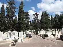 Nahalat Yitzhak Cemetery (Hebrew: בית העלמין נחלת יצחק) is a Jewish municipal burial ground in the Tel Aviv District city of Givatayim, Israel, east of the Nahalat Yitzhak neighborhood of Tel Aviv. Founded in 1932, it includes more than 30,000 graves, including those of Israeli political and cultural figures, and Rebbes of several Hasidic dynasties.[1] The cemetery contains several tracts of military graves and mass graves of unidentified soldiers from the period of the 1948 Arab-Israeli War. It also features memorials to Jewish communities destroyed in the Holocaust.