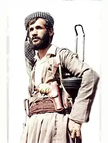 According to some sources, he chose the nickname "Mama Risha" because he swore that he would never shave his beard until Kurdistan was fully free from the Ba'ath Party's control.[1][2][3] He was also nicknamed "The Iron Man" and "Kirkuk's Lion" by his fellow Peshmerga due to his conduct during battles with Iraqi forces in the Kirkuk region.[1][3]