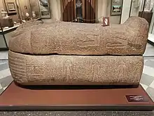 Nakhy is only known from his granite sarcophagus that is today in the Hermitage Museum in Saint Petersburg (Inv. no. 768).[1] The sarcophagus shows Nakhy as mummy and is decorated with images and texts. Next to the title of a high priest of Ptah, he also bears other important titles, such as member of the elite, overlord of the two countries, beloved one of the god and privy to the secret of the Ptah-temple. His parents are not named on the sarcophagus. Nakhy is not known from other sources and is therefore difficult to date, but the sarcophagus most likely dates to the 19th Dynasty. The high priest of Ptah was one of the most important religious officials in the Egyptian New Kingdom.