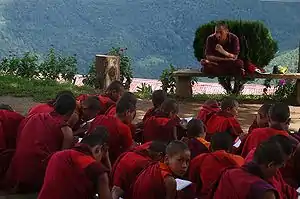 Debating practice requires at least one monk that is the answerer with at least another monk that is the questioner. The answerer must give a competent answer to the question or otherwise face further questioning. The debate of Buddhist logic continues between the questioner and answerer. The technique of debate in the shedra helps to dispel confusion and illusion about Buddhist philosophical teachings. It helps the mind to develop greater clarity about the nature of reality that includes the idea of a self and the experience of phenomena[1]