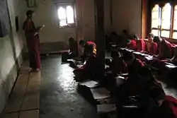 Under the direction and guidance of Khenpo Sonam Tshewang, the first dedicated Translation Class began at Nalanda Buddhist Institute in 2013. The Translation Class is a three year course where students focus on learning and improving English speaking, vocabulary, reading, and writing skills. The goal is for the monks to translate documents as well as interpret for lopens (teachers) speaking in Dzongkha or Chokey to an English speaking audience. English is used in tandem with Dzongkha (the official language of Bhutan), and Chokey (Classical Tibetan); the spiritual language used in many Buddhist texts; during translation. Students learn how to translate between the three languages. The class focuses on learning Buddhist texts in English to enable translation into Dzongkha or Chokey, becoming familiar with the English vocabulary in common use for Buddhist concepts. In order to ensure full understanding and accurate translation students, other non-religious subjects are taught, such as planetary science and the secular view of the origin of the universe, basic anatomy and physiology, other religions, and traditions of Buddhism.