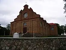 In the early morning of 8 May 1943, Soviet partisans raided Naliboki.[10] According to Chernyshov's report, the "Dzerzhinsky" unit, the "Bolshevik" unit and the "Suvorov" unit took part in the assault and were commanded by the commander of the "Stalin" brigade.[9] Naliboki's self-defense was outnumbered, with only 26 rifles and 2 light machine guns.[10] However, the policemen managed to barricade themselves in the station, located in an unfinished church building, and retreated in the evening after the Soviet partisans left, despite heavy losses.[10]