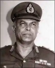 He was appointed commanding officer of the 1st Field Engineer Regiment on 6 December 1970, serving till 16 May 1977.[3] He was promoted to the rank of lieutenant colonel in December 1971 and colonel in January 1977. During this time he served as an Extra Aide-de-camp to the President. He was the Commander Engineer Group from 1977 to 1980. Whilst serving in the Army, he was seconded to the Ceylon Shipping Corporation for two years and a member of the Board of Directors of the Tractor Corporation from 1977 to 1980. He was appointed as Director Engineer Services and later Director Designated Budget and Financial Management before being promoted to the rank of brigadier on 31 December 1981. He served as Commander - Support Force, Panagoda; Commander - Security Force, Jaffna and Coordinating Officer of Jaffna and Kilinochchi. He attended the National Security and Strategic Study course at the National Defence College in New Delhi.[1][2]