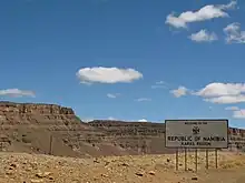 The border between Namibia and South Africa is 967 kilometres (601 mi) long.[1] It runs along the Orange River from its mouth on the Atlantic Ocean to the 20th meridian east, and then northwards along that meridian to the tripoint with Botswana at the Nossob River.[2]
