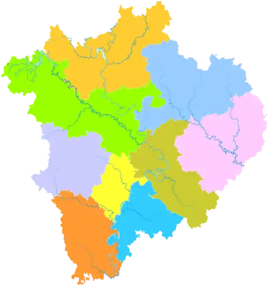 - ↑ 南充市 (in Chinese (China)). XZQH. Archived from the original on 2008-05-18. Retrieved 2008-05-17.