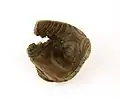 The vessel is a shallow, hardwood bowl without handles, with a broad flat foot. Originally it would have stood 10 cm in height, with a diameter of 12 cm, although it has been extensively damaged over the years and slightly less than half of the bowl remains. Unlike other examples of mazers, it has no boss or knob in the centre of the inside, and there is no evidence that one has been removed or lost due to damage.[6] It is fashioned from hardwood, most likely wych elm, with no visible decorations. A groove which may previously have held a metal rim runs around the lip.[10]