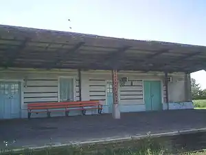 In this plain environment, a railroad stop was set up every twenty kilometers. The Napaleofú Station facilities were erected where they are today, on land donated by the Cuevas family. The station was inaugurated on 16 December 1914, under the jurisdiction of the Balcarce Partido.[18] It was intended to name the station Miguel Cuevas as a tribute to the head of the donor family, but the government official in charge of this procedure demanded a "bribe", to which Cuevas objected. Other sources maintain that this name was not possible because there was a railway stop in Mendoza called "De las Cuevas".[2]