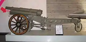 The Canon de 65 M modele 1906 where M stands for "montagne", or briefly 65 mm Mle 1906 where "mle" stands for "modèle", was a French mountain gun which entered service with the régiments d'artillerie de montagne in 1906 and was one of the first soft-recoil guns in service. The carriage of the Mle 1906 was hinged and could be broken down into four mule loads for transport. By 1939, the weapon was generally used as an infantry support gun. After 1940, the Germans used the guns as the 6,5 cm GebK 221(f).[1] The gun was also used by Israel in 1948 Arab–Israeli War as Napoleonchik, and by Albania, Poland and Greece.