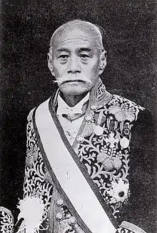 Even so, despite extensive reforms and modernization efforts, the prefecture's economic and political situation vis-a-vis Tokyo could be said to have more closely resembled that of a colony than that of an integral part of the home country.[9] Narahara was not popular in Okinawa.[10] He is said to have largely ignored the needs of Okinawan farmers, and to have given preferential treatment to men from his home province of Satsuma (Kagoshima prefecture).[5] A number of movements arose opposing his policies; one was led by prefectural official Jahana Noboru and connected to the Freedom and People's Rights Movement (自由民権運動, jiyū minken undō) active in other parts of the country. Jahana and his compatriots accused Narahara's administration of unfair policies and unjust treatment; the movement was ultimately suppressed by Narahara.[5] Another group of officials and other prominent Okinawans, called the Kōdō-kai (公同会, "Public Unity Association"), sought to reunite the Okinawan people under Okinawan leadership, and called for the replacement of Narahara as governor with the Marquis Shō Tai, who had abdicated as king of the Ryūkyū Kingdom years earlier. Though the Kōdō-kai was not calling for Okinawan independence, and supported an Okinawan administration within the Empire of Japan and subordinate to the government at Tokyo, the central government deemed that giving in to their demands could be seen to reflect an acknowledgment of Japanese misrule or Okinawan dissatisfaction, and could contribute to the debate over sovereignty of the islands. Thus, the movement was quickly crushed.[11]