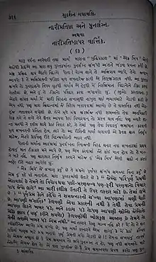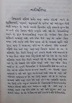 ![]() First page of Nari Pratishtha; from Manilal Na Tran Lakho, edited by Dhirubhai Thaker | |