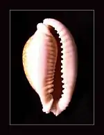 ![]() A shells of Naria miliaris, lateral view, anterior end towards the right |
