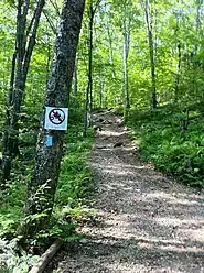 The Blue-Blazed Narragansett Trail was created by the Connecticut Forest and Park Association as part of the Blue-Blazed Hiking Trail system. The eastern end of the longer Pequot Trail blazed in the 1930s connected to the western end of the Narragansett Trail at the Lantern Hill section of the Mashantucket Pequot reservation. The original "connection" of these two trails can be seen in the Connecticut Forest and Park Association's 1940 Connecticut Walk Book map of major trails.[3] The missing "gap" sections are on Mashantucket Pequot Tribal Nation property and are trails used for centuries by the Pequot tribe.[4] Plans are underway to lengthen the Pequot Trail and return the south-eastern terminus to its original location with the Narragansett Trail on Lantern Hill in North Stonington via the Mashantucket Pequot Tribal Nation property near their museum and research center.