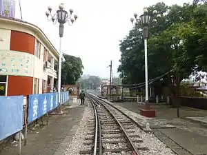 The 1,000 mm (3 ft 3+38 in) metre gauge Kunming–Hekou railway (previously known as the "Sino-Vietnamese Railway") was part of the Kunming–Haiphong railway built by French colonists between Vietnam and China. Due to landslides and the opening of the new standard-gauge Kunming-Yuxi-Hekou railway, this meter-gauge line is now inoperative for passengers (except for a small section within Greater Kunming) but does have freight services.