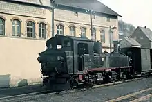 Steam locomotive 99 561 of the Pressnitz Valley Railway in Niederschmiedeberg