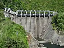 The Narude Dam is a gravity dam on the Shō River about 22 km (14 mi) south of Nanto on the border of Toyama and Gifu Prefectures, Japan. It was constructed between 1950 and 1952. The dam has an associated 97 MW hydroelectric power station which was built in two parts. The first part of the power station (37 MW) was commissioned in 1951 and the second part of the power station (60 MW) was commissioned in 1975. Of the nine dams on the Shō River it is the sixth furthest downstream.[1]