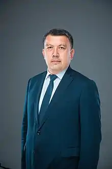 Narzullo Naimovich Oblomuradov (Uzbek: Narzullo Naimovich Oblomurodov) (born 22 January 1975) is an Uzbekistan politician and scientist who is serving as the leader of the Ecological Party of Uzbekistan since 1 February 2021. Since 30 December 2021, he is the Chairman of the State Committee of the Republic of Uzbekistan on Ecology and Environmental Protection (Minister of Ecology).[1][2][3] He was the Ecological Party's presidential candidate in 2021 presidential elections.[4] He got 4.1%.[5]