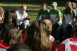 Every summer, Nashi runs recruiting camps all across Russia. New members receive a basic military-style training, according to Yakimenko. The July 2007 annual Nashi encampment, located 200 miles outside Moscow, was attended by over 10,000 members. It involved two weeks of lectures and calisthenics. Some reports mention the use of the camp to improve the demographics of Russia,[20] where twenty tents were set up for twenty newlywed couples to sleep together.[51] In an effort to deconstruct its discredited public image in 2012, Nashi invited opposition activists to its annual encampment named "Occupy Seliger" for that year; but few opposition activists attended.[52]