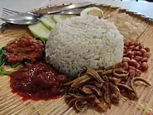 | Ingredients generally used | Served with sambal, anchovies, cucumber, and various side dishes |