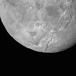 - ↑ Robbins, Stuart J.; Beyer, Ross A.; Spencer, John R.; et al. (January 2019). "Geologic Landforms and Chronostratigraphic History of Charon as Revealed by a Hemispheric Geologic Map". Journal of Geophysical Research: Planets. 124 (1): 155–174. Bibcode:2019JGRE..124..155R. doi:10.1029/2018JE005684. S2CID 134425302.