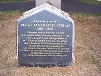 Elnathan "Nat" Flatman (1810 – 20 August 1860), born Holton St. Mary, Suffolk, was the first Champion flat racing jockey of Great Britain. He began his thirty-four-year racing career as an apprentice jockey at age fifteen and by 1840 he was the dominant rider in British racing, winning the Champion Jockey title thirteen years in a row. During his career, Flatman won the patronage of many significant owners, including Lord George Bentinck, the Earl of Chesterfield, Admiral Rous, Lord Stradbroke and Lord Derby.[1] For these owners, and others like them he won most of the important Thoroughbred horse races in England, including ten Classics, and some significant races in France. He continued to ride until the paddock accident that incapacitated him and ultimately led to his death at the age of 50.