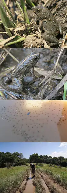 Habitat, eggs and two colour variations of Phrynobatrachus natalensis, Ngoye Forest, KwaZulu Natal, South Africa