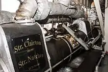 One of the two tandem-compound steam engines on the Steamboat Natchez. Each engine produces 1600 horsepower and has the dimensions 7 feet (2.1 m) by 30 inches (0.76 m) by 15 inches (0.38 m).