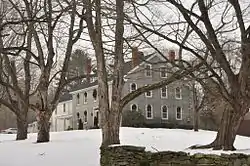 The date of construction of Nathan Aldrich's stone house is not known; it is estimated to have been built c. 1830 based on its Greek Revival details. Stone farmhouses of the period are rare in Mendon, and are predominantly associated with Quakers like Aldrich. The property was acquired in 1891 by Catherine Regina Seabury, who established a rural retreat for women on the property, including the construction of a chapel on the grounds in 1899–1900. The retreat was transformed into a boarding school in 1912, but it did not survive Seabury's death in 1929. The next owner, Doctor Joseph Ashkins, transformed the property into a country estate, removing many of the trappings and alterations made to accommodate the institutional needs.[2]
