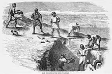 With the backing of Anthony Panizzi, Davis had received British Foreign Office support for his dig, an unusual arrangement.[11] Archaeological work had already been done at Carthage by the Danish consul Christian Tuxen Falbe, and the British consul Thomas Reade.[12] Cases from Davis arrived at the museum in 1857; there were 51 cases received in 1858, and more in 1860.[9]