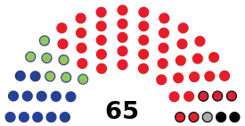 Currently, there are 65 total members of the National Assembly.[15] Voters in single member constituencies directly elect 57 of these members for a term of 5 years through a plurality (or first-past-the-post) system. Six members, meanwhile, are nominated by the President and elected by the assembly. Finally, the remaining two (the President and Speaker of the National Assembly) are ex officio.[16][17]
