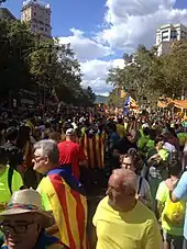 - 1 2 "Catalan independence rally: Thousands gather in Barcelona". bbc.co.uk. Barcelona: British Broadcasting Corporation. 11 September 2017. Retrieved 11 September 2017.