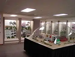The museum has over 30,000 guests each year and about 30,000 farm toys; it is also the center of the National Farm Toy Show. The National Farm Toy Museum includes one of the largest collections of cast iron farm toys.[1] The museum is a part of yearly toy shows in June [2] and November. The first floor of the museum has a 10-minute short film for guests to watch, about toy production in Dyersville and farm toy aficionados talking about their collections. The floor also includes a play area, dioramas of farm homesteads, and small exhibits that detail how toys are produced. The second floor has many farm toys stored in cases, truck toys in cases, and a collection of cowboy and Native American dolls.[1][3] The museum also houses a gift shop.[4] Ertl CEO Fred Ertl Jr.'s personal farm toy collection was auctioned off at the National Farm Toy Museum after he retired.[5] Thanks in part to the museum, but also to the fact that three farm toy companies are located in Dyersville, the city is known as the Farm Toy Capital of the World.[6]