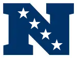The original NFC logo, in use from 1970 to 2009, depicted a blue 'N' with three stars across it. The new logo was similar to that of the AFC (which itself was similar to the AFL logo) in that unlike the NFL logo it consisted of a single letter instead of a full abbreviation. The three stars represented the three divisions that were used from 1970 to 2001 (Eastern, Central and Western).[4] The 2010 NFL season brought an updated NFC logo. Largely similar to the old logo, the new logo has a fourth star, representing the four divisions that have composed the NFC since 2002,[5] with the AFC logo being simultaneously updated in a similar manner.