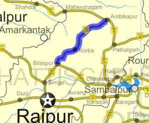 | States | Chhattisgarh: 200 km (120 mi) | |||