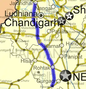 National Highway 71 (NH 71) was a National Highway in Northern India. NH 71 connected Jalandhar in Punjab to Rewari in Haryana, running a distance of 307 km (191 mi).[1] It ran for a distance of 130 km (81 mi) in Punjab and 177 km (110 mi) in Haryana.[2] National Highway 71 started at the junction of old NH 1 at Jalandhar and traverses down to Rewari to meet old NH 8.
