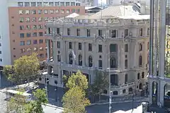 The club's Italianate building on the Embankment of the river Thames is the second-largest club-house built in London. (It was the largest ever at the time, but was superseded by the later Royal Automobile Club building completed in 1911.) Designed by Alfred Waterhouse, it was completed in 1887.[1] Its facilities include a dining room, a bar, function rooms, a billiards room, a smoking room, a library and an outdoor riverside terrace. It is located at Whitehall Place, close to the Houses of Parliament, the Thames Embankment and Trafalgar Square.