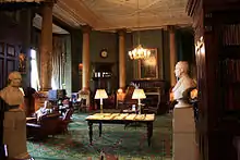 Throughout the 1960s and 1970s, all London clubs were in serious decline,[1] and the NLC was no exception. By the 1970s the club was in a serious state of disrepair, its membership dwindling, and its finances losing almost a thousand pounds a week. In 1976, Liberal leader Jeremy Thorpe handed over the club to Canadian businessman George Marks, styling himself George de Chabris (and, more improbably, "His Serene Holiness the Prince de Chabris", which he claimed was "a Catholic title"), who, unknown to Thorpe, was a shrewd operator. "De Chabris" claimed to be a multi-millionaire willing to funnel money into the club (although both his wealth and his willingness to finance the club turned out to be untrue), and he spent nine months running the club, relaxing membership rules and bringing in more income, but also moving his family in rent-free, running several businesses from its premises, paying for a sports car and his children's private school fees from the club's accounts, and he eventually left in a hurry owing the club £60,000, (equivalent to £459,427 in 2021) even emptying out the cash till of the day's takings as he went. He eventually agreed to pay back half of that sum in instalments. In his time at the club he also sold it a painting for £10,000, when it was valued at less than £1,000.[44] One of his more controversial reforms was to sell the National Liberal Club's Gladstone Library (which contained the largest library of 17th- to 20th-century political material in the country, including 35,000 books and over 30,000 pamphlets) to the University of Bristol for £40,000. The pretext given was that the club could no longer afford to pay the Librarian's wages, and that it did not want to leave such valuable material unguarded.[45] Ian Bradley described it as "a derisory sum" for the sale, particularly in light of the unique collection of accumulated candidates' manifestos from 19th-century general elections.[46] Until its sale, it had been, as Peter Harris observed, "The most extensive of the Club libraries of London."[3] The collection is still housed at Bristol today. However, the papers referring to the history of the club itself were returned to the NLC in the 1990s, as they had not been included in the sale, and had been sent to Bristol by accident.[3]