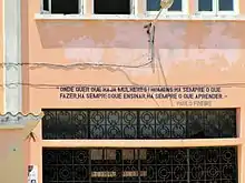 Entrance into the lyceum with a plaque of a quote by Paulo Freire
