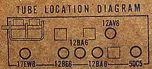 The circuitry used in the radio is based on the "All-American Five (miniature)" tube setup, sans the 35W4 mini rectifier tube that would have been used at the time in other tube radios.
