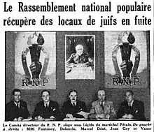 The National Popular Rally (French: Rassemblement national populaire, RNP, 1941–1944) was a French political party and one of the main collaborationist parties under the Vichy regime of World War II.