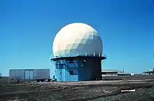 NSSL's first Doppler weather radar, the NSSL Doppler, located in Norman, Oklahoma. 1970s research using this radar led to NWS NEXRAD WSR-88D radar network.