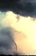 The first tornado captured on May 24, 1973, by the NSSL Doppler weather radar and NSSL chase personnel. The tornado is here in its early stage of formation near Union City, Oklahoma