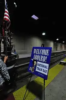 National Train Day was a holiday started by Amtrak in 2008 as a method to spread information to the general public about the advantages of railway travel and the history of trains in the United States. It was held each year on the Saturday closest to May 10, the anniversary of the pounding of the Golden spike in Promontory, Utah, which marked the completion of the first transcontinental railroad in the U.S. Events were held at major Amtrak stations as well as railroad museums across the country and often have passenger cars and model railroad layouts on display. The largest events took place in Washington, D.C., Philadelphia, Chicago and Los Angeles.[1] National Train Day was cancelled after 2015 due to budget cuts within Amtrak,[2] although many rail organizations and railfans continue to observe the holiday.