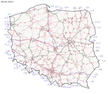 - ↑ "Zarządzenie nr 32 Generalnego Dyrektora Dróg Krajowych i Autostrad z dnia 27 grudnia 2022 roku w sprawie nadania numerów drogom krajowym" [Ordinance No. 32 of the General Director for National Roads and Motorways of December 27, 2022, on assigning numbers to national roads.] (PDF). Dziennik Urzędowy Generalnej Dyrekcji Dróg Krajowych i Autostrad (in Polish). Retrieved 13 January 2023.