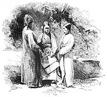 Upon contact with European colonizers, some tribes adopted a patriarchal system of gender roles that resembled European culture.[17] In the Cherokee Nation, a series of laws passed by the Cherokee Council over the course of the nineteenth century restricted women's sexual freedom, including the criminalization of abortion. The Council also passed laws which introduced new patrilineal forms of inheriting property and establishing citizenship.[18] Historian Theda Perdue suggests that changes to Cherokee gender roles were "superficial" before removal, and that the Council's series of bills represented a point of view "limited perhaps to the Cherokee elite who sought to emulate white southern planters."[19]